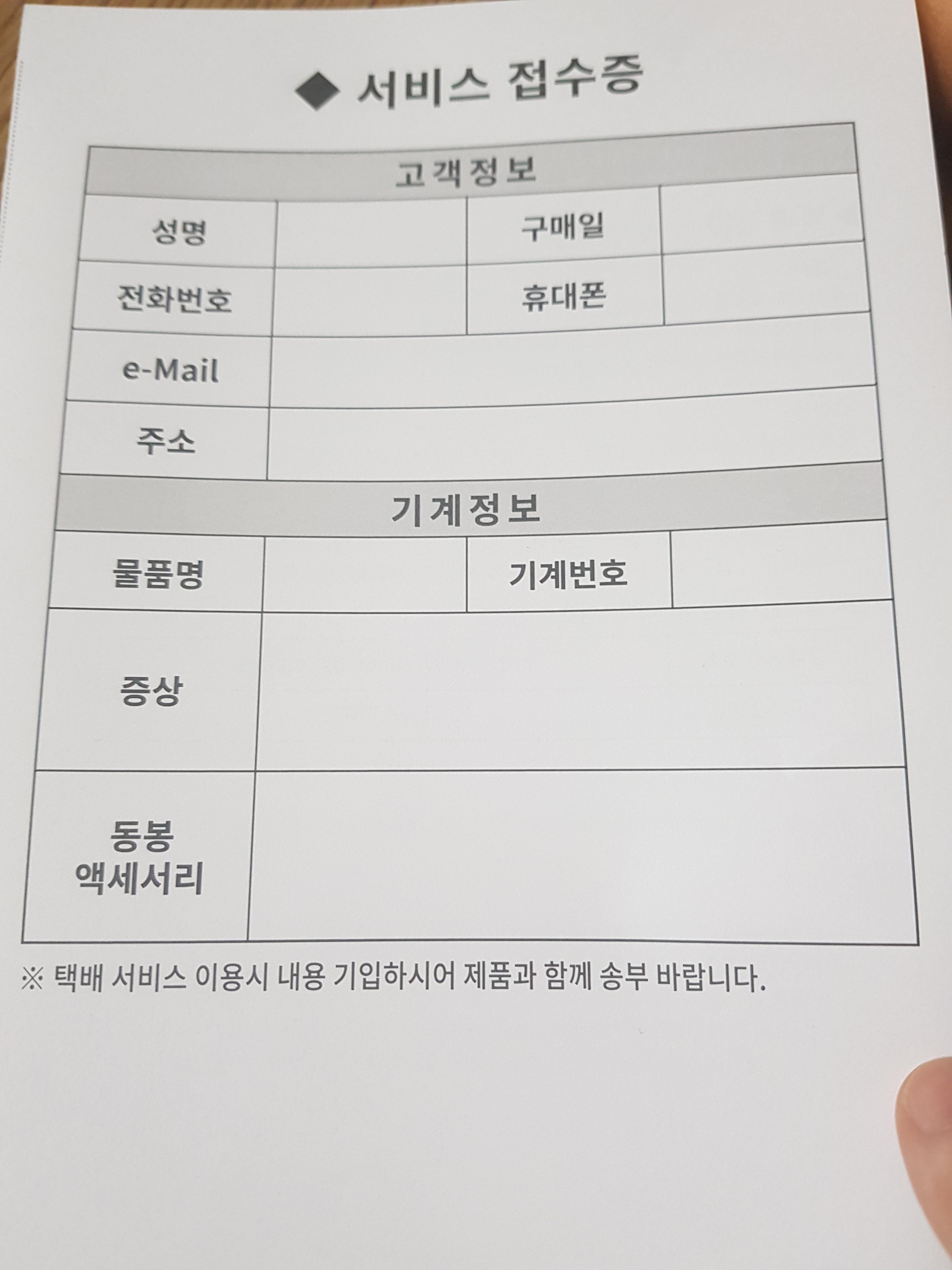 캐논G6090 에 들어있는 서비스 접수증입니다.